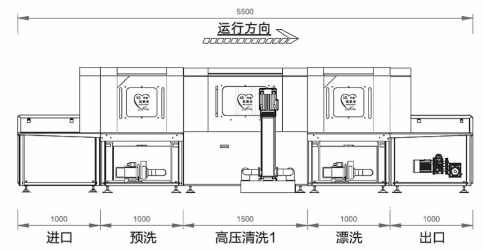 La lavatrice a cesto può essere utilizzata per la pulizia di vari cestelli di ricambio, piatti, scatole e altri contenitori in macelli, carni, prodotti acquatici, ortaggi e altri impianti di trasformazione alimentare. Processo di prelavaggio: La pompa dell'acqua aspira l'acqua dal serbatoio dell'acqua di prelavaggio e la spruzza attraverso l'ugello, in modo che tutte le superfici della scatola o del contenitore della rete alimentare possano essere pulite e le operazioni varie possano essere lavate via.