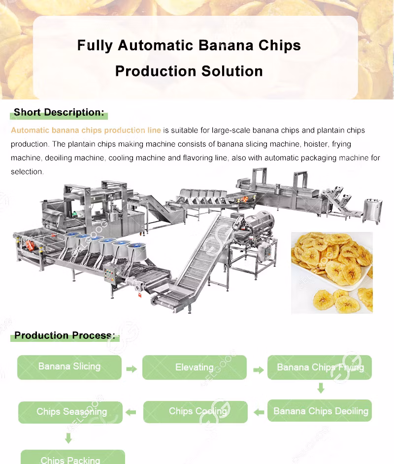 Macchina per la pelatura di trucioli di banana---macchina per il taglio di trucioli di plantain---- frittura ---- macchina deoliatrice ---- ascensore ---- macchina aromatizzante ---- ascensore ---- macchina impacchettatrice